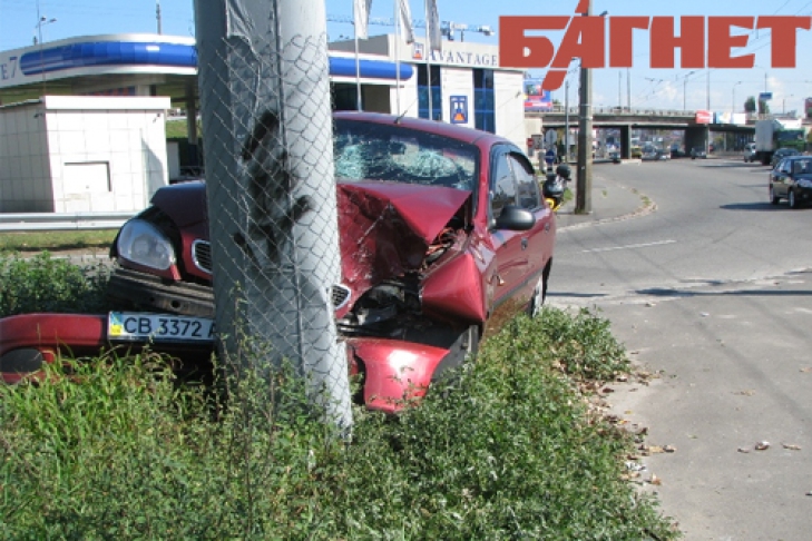 29 сентября, в Киеве, на Московском проспекте водитель Daewoo Lanos, не справившись на повороте с управлением, вылетел на газон и на полном ходу врезался в опору рекламного щита.