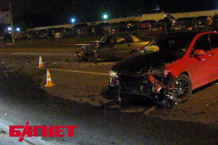 В субботу, поздно вечером, 20 октября, в Киеве на улице Закревского Honda Accord протаранил Daewoo Lanos.