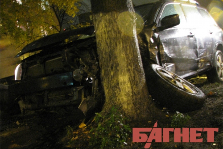 В Киеве внедорожник отправил Mitsubishi в дерево (ВИДЕО)