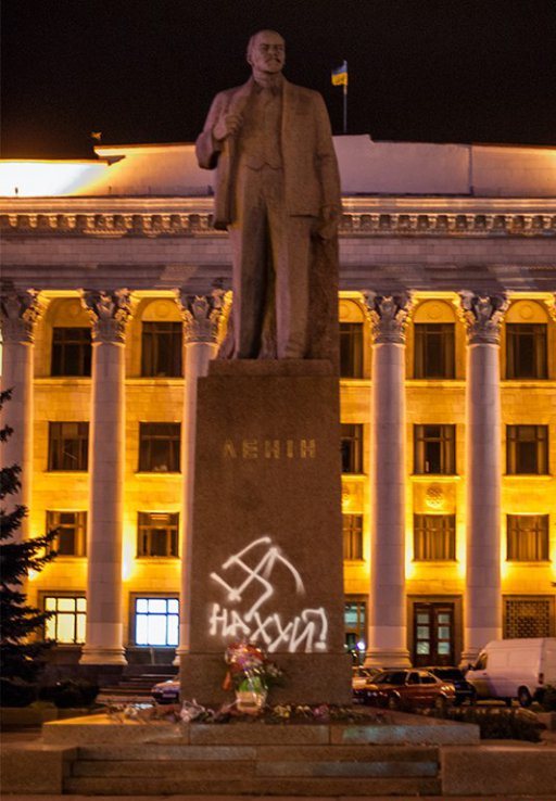 В Житомире поздним вечером 7 ноября на монументе Ленину неизвестные серебряной краской нарисовали свастику и написали нецензурное слово. Об этом пишут региональные СМИ.