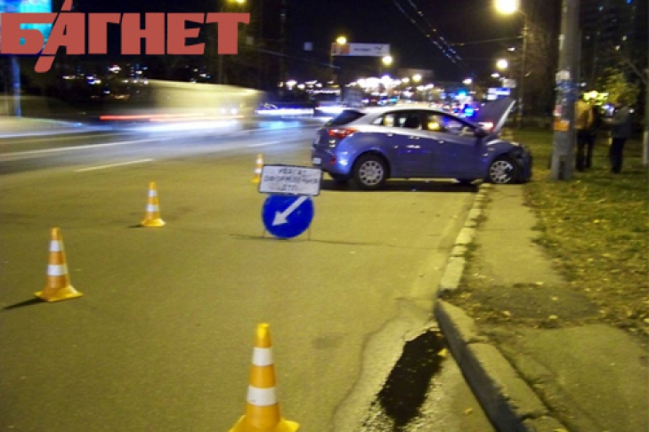 Вечером, 13 ноября, в Киеве, на перекрестке улицы Каштановой и проспекта Маяковского автомобиль Hyundai врезался в осветительный столб.