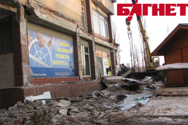 Глыбы бетона упали прямо на тротуар. Несколько кусков разбили окно кафе, которое находилось на первом этаже.