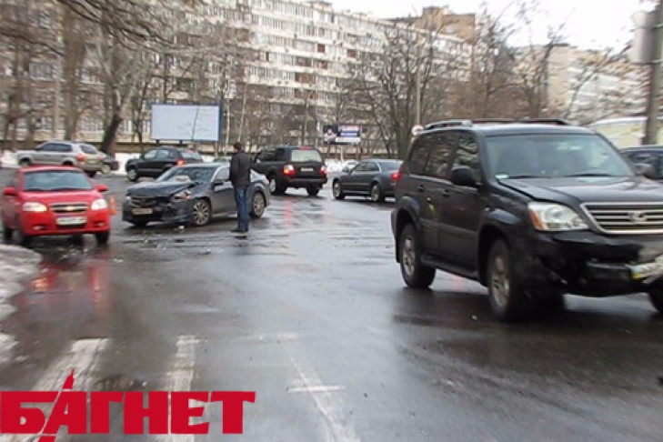 В субботу, 2 февраля, в Киеве, на улице Щорса столкнулись Honda Accord и внедорожник Lexus.