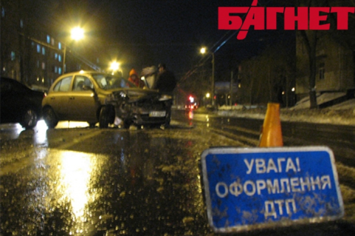 Вечером 2 февраля в Киеве, на улице Киквидзе «лоб в лоб» столкнулись Nissan и Toyota.