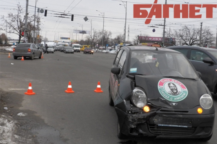 В воскресенье, 17 февраля, в Киеве, на перекрестке улиц Закревского и Драйзера автомобиль Daewoo Matiz протаранил Opel.