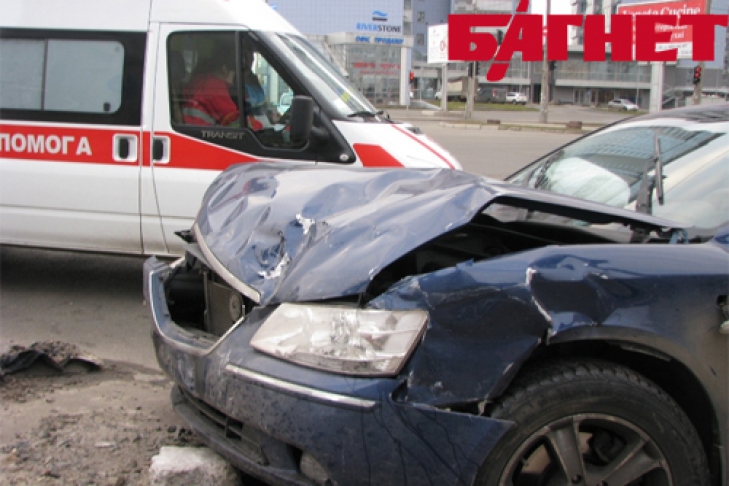 Удар был такой силы, что Yaris вылетел на тротуар и на полной скорости врезался в опору рекламного щита. Чудом не пострадали случайные прохожие. Но помощь медиков все же понадобилась водителям - участникам ДТП.