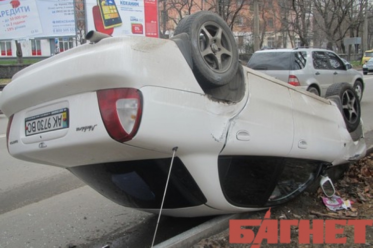 Иномарка сделала «воздушное сальто» и легла на крышу