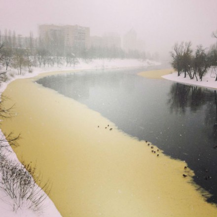 С его слов еще утром 23 марта жители столицы увидели на левом берегу Днепра (в районе Русановки) странные пятна, которые затянули всю поверхность воды вдоль берега реки.