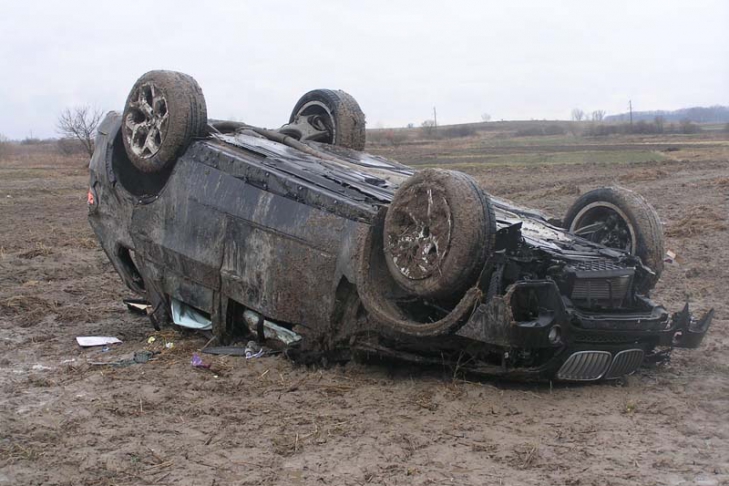 В оказавшемся на крыше внедорожнике, повылетали стекла, а саму машину немного расплющило. Водитель получил ушиб шейного отдела позвоночника и сотрясение головного мозга.