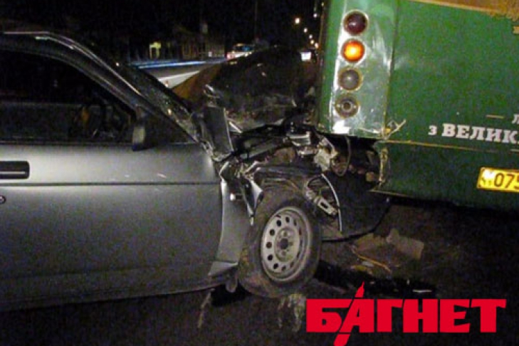 Предварительно установлено, что ВАЗ ехал в направлении Ленинградской площади. По неизвестным причинам, водитель легкового авто поздно заметил остановившуюся «маршрутку», применил экстренное торможение, но все же протаранил «Богдан» в заднюю часть.
