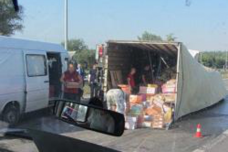 Несмотря на то, что фуру подняли и оттащили к обочине дороги, движение по трассе было затруднено. Грузовые автомобили стояли в пробке, а легковые авто объезжали затор по грунтовой дороге на краю поля. Причем недалеко от места аварии на обочине лежала гора коробок с печеньем, которые так и не доехали к потребителям.