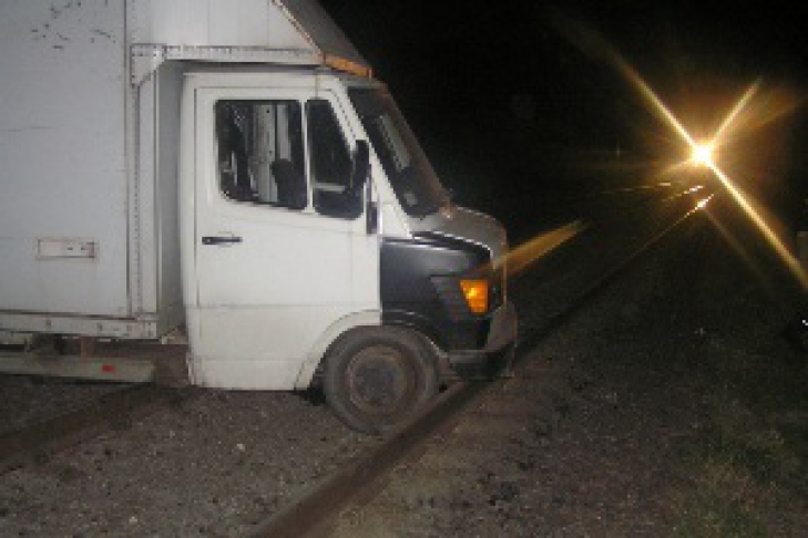Грузовик выехал на рельсы, застрял и остановил поезда (ФОТО)