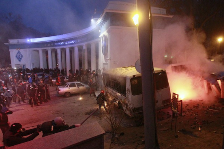 Напомним, на улице Грушевского возле стадиона «Динамо» третьи сутки продолжается противостояние между «Беркутом» и митингующими.