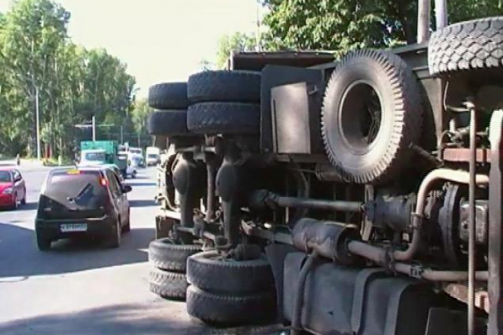 При этом, непонятно из-за чего произошло дорожно-транспортное происшествие. По одной из версии, КаМАЗ перевернулся на скользкой после дождя дороге и в результате его вынесло на встречную полосу. Пострадавших нет.
