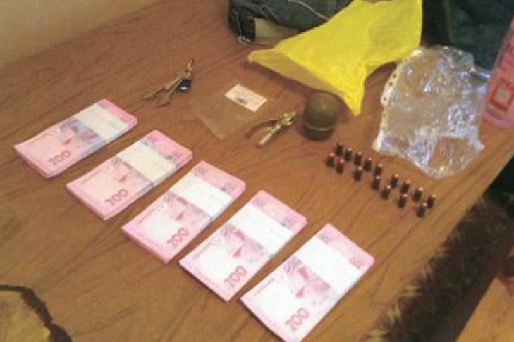 Во время задержания у него изъято 100 тысяч гривен наличными, граната РГД-5, патроны к огнестрельному оружию и 300 граммов наркотического вещества.