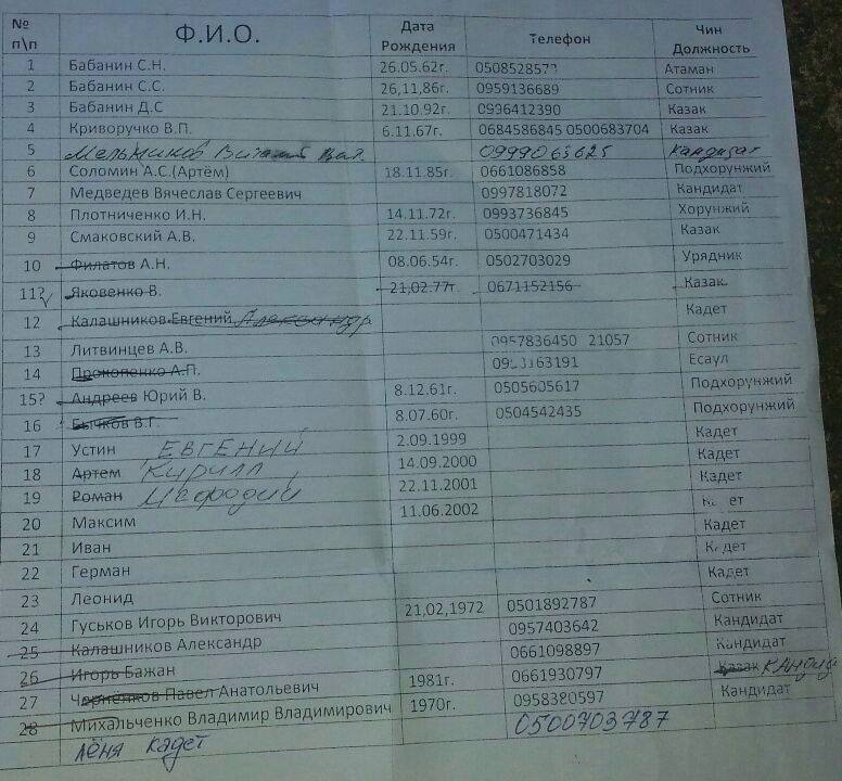 На фото: задержанный бойцами «Азова» Гуськов, фото его паспорта, список участников бердянского пророссийского казачества воюющих в так называемом «ополчении» Славянска.