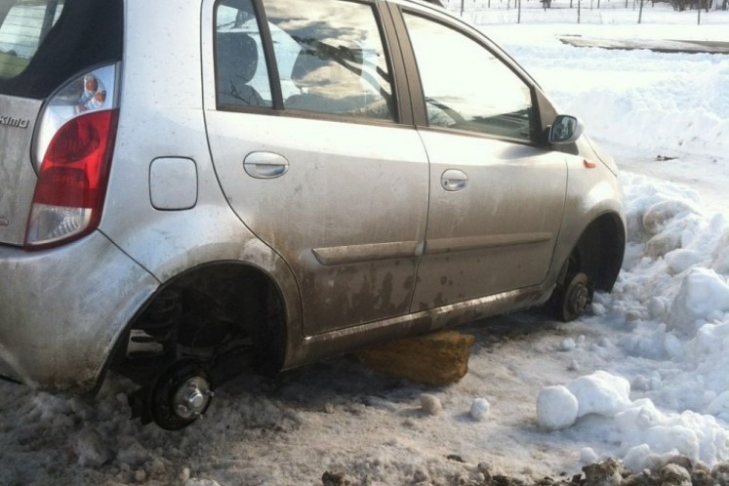 В машинах разбиты окна, выломаны капоты, сняты колеса, украдены аккумуляторы. На стеклах в некоторых машинах видны пулевые пробоины, сделанные, по всей видимости, из травматического оружия.