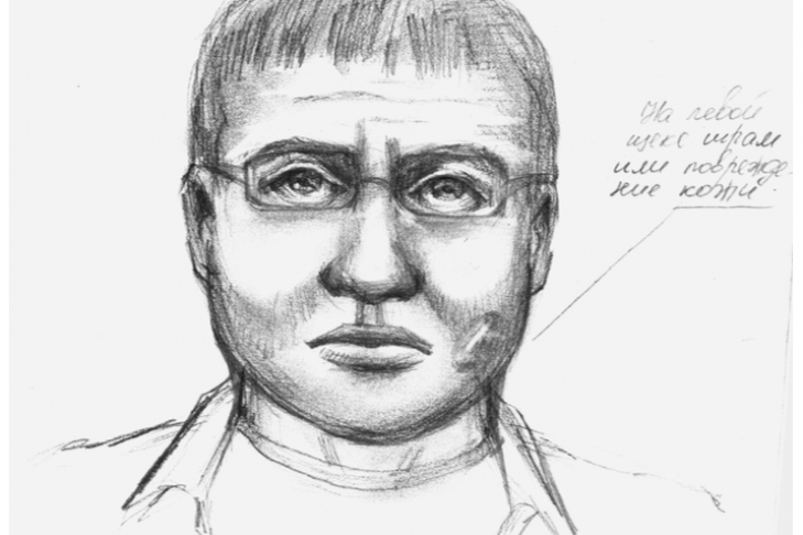 чоловік 35-40 років слав’янського типу зовнішності зріст до 170 см. щільної (плотної) тілобудови, обличчя кругле, волосся темно-каштанового кольору, коротке. Губи пухкі, прямо розташовані. Ніс круглий, не великий, очі середні темні. Може носити окуляри полу круглі, дужки прямі. На лівій щоці має пошкодження або шрам.
