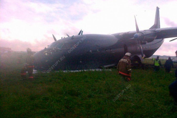 "Самолет приземлился со второго захода на грунт параллельно взлетной полосе, в 150 метрах от нее, тормозной путь составил 300 метров. Самолет при посадке повредил переднюю стойку шасси, задние шасси зарылись в почву", - сообщили в МЧС.