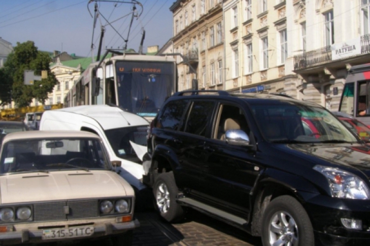 "Как передает корреспондент "Полемики", столкнулись трамвай № 6 с автомобилем Renault. Кроме того, ущерб понесли еще четыре легковушки. По словам водителя трамвая, автомобиль Renault "подрезал" его с правой стороны. В результате этого легковушку зажало между трамваем и внедорожником Toyota Land Cruiser, который остановился в этот момент перед светофором на красный свет. В аварии пострадали также BMW, Audi и ВАЗ 6-й модели. В результате аварии остановилось движение автотранспорта по ул. Подвальной и Ивана Франко. Пробка тянется до рынка "Добробут", - говорится в сообщении.