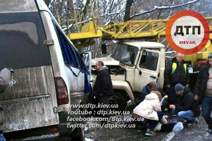 После столкновения маршрутки и автовышки несколько человек находятся в крайне тяжелом состоянии