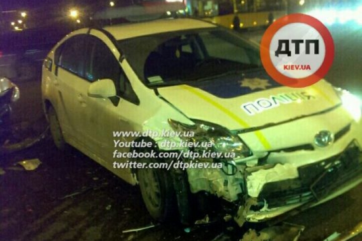 Как сообщает dtp.kiev.ua, серьезное ДТП с участием патрульного полицейского автомобиля "Тойота Приус" произошло в Киеве на Печерске на перекрестке Киквидзе и Бастионной вечером 3 февраля.