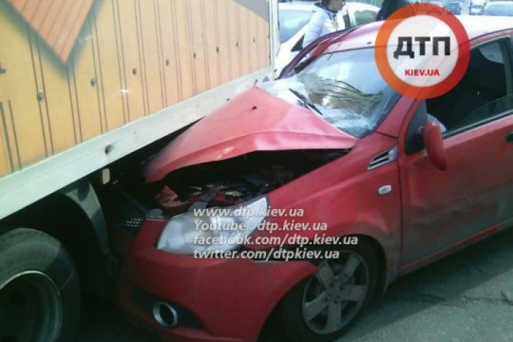 ДТП в Киеве: Chevrolet Aveo залетел под грузовик