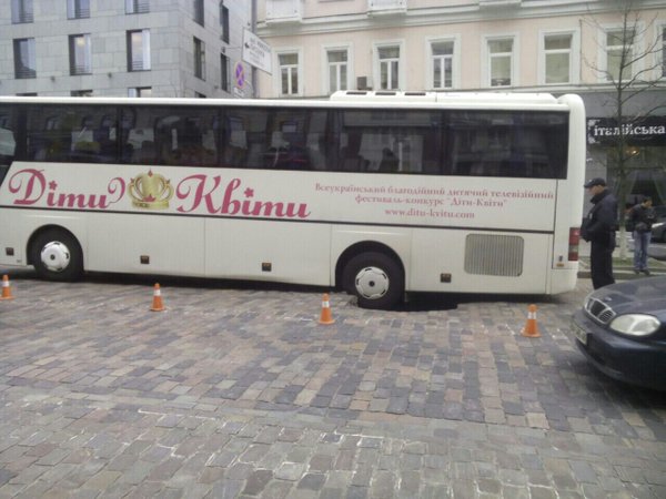 В центре Киева туристический автобус, перевозивший детей, провалился в яму
