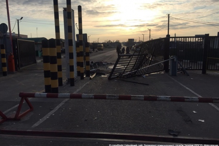 Пограничники сообщили, что микроавтобус Mersedes Vito на большой скорости врезался в островок безопасности и во въездные ворота пункта пропуска.