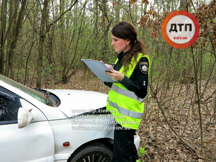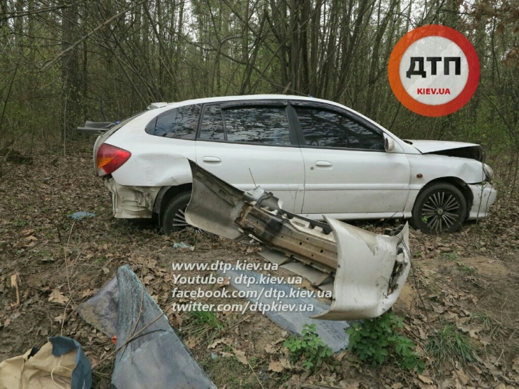 Водитель Kia вылетел с дороги в лес под Киевом (ФОТО)