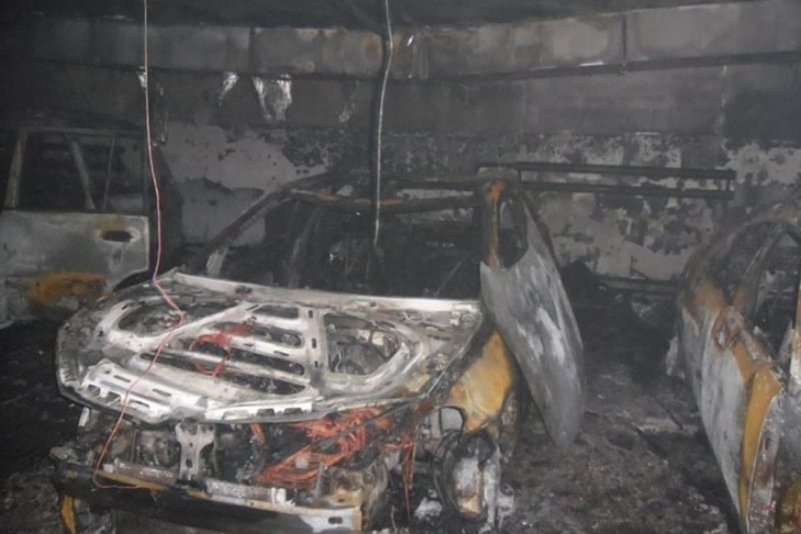 Во время пожара сгорело четыре автомобиля: Lexus, Subaru, Volkswagen, Ford, также повреждены автомобили Range Rover и Mitsubishi.