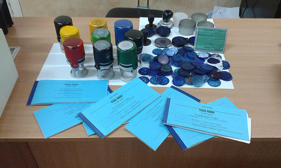 При проведении процессуальных действий сотрудники Управления защиты экономики изъяли финансовую документацию, печати фиктивных обществ, чековые книжки, черновые записи, где указаны суммы денежных средств и клиенты, которым предоставлялись услуги.