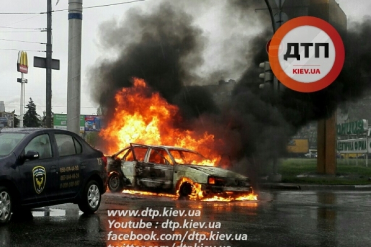 ДТП в Киеве: на Дарницкой площади сгорел "Фольксваген Пассат"