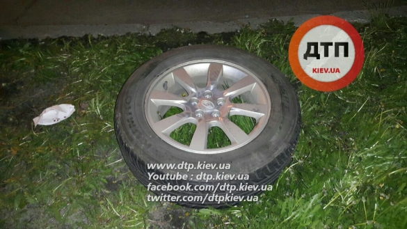 Там у водителя автомобиля Субару Форестер на ходу отлетело заднее левое колесо, которое преодолело отбойник и врезалось в водительскую дверь автомобиля Фольксваген, который двигался от Петровки к Троещине.