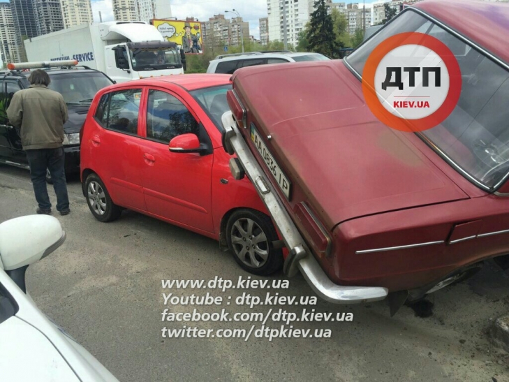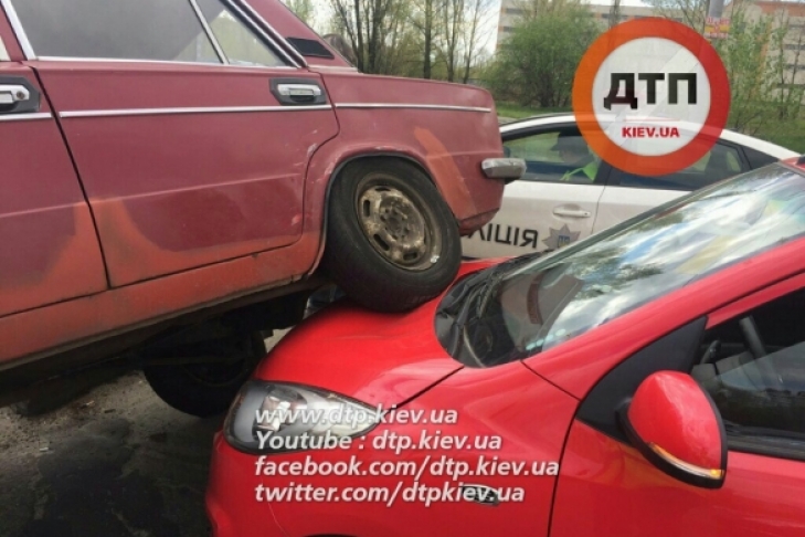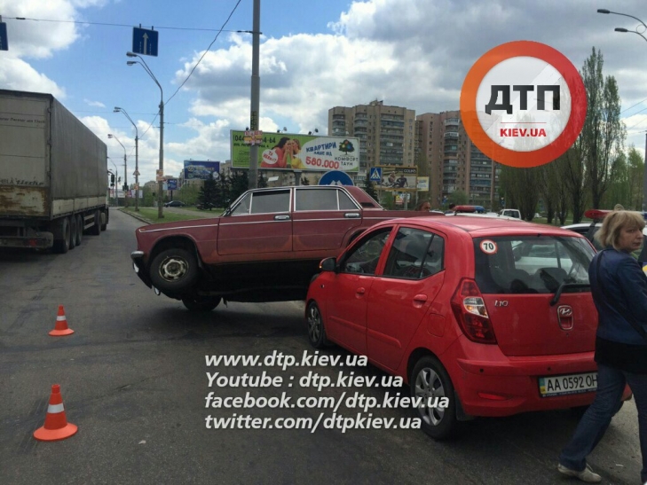 Каскадерское ДТП в Киеве: ВАЗ "оседлал" Hyundai (ФОТО)