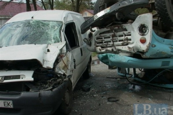 ДТП в Киеве: грузовик ЗИЛ опрокинулся на "Пежо", есть пострадавшие