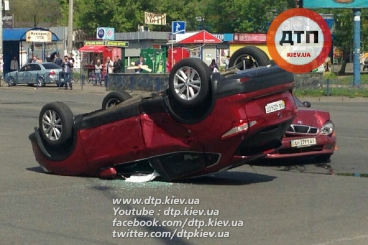 ДТП в Киеве: на Полярной "Деу Ланос" опрокинул на крышу "Ниссан"