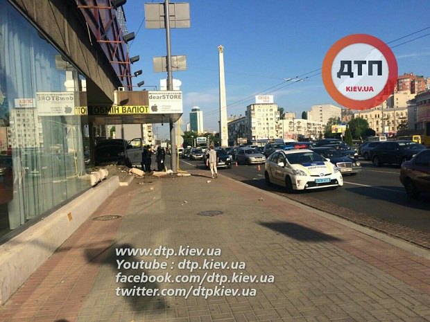 "ДТП прямо сейчас в Киеве на площади Победы. Водитель микроавтобуса "Фольксваген" залетел на ступеньки казино в здании гостиницы "Лыбидь", - говорится в сообщении.