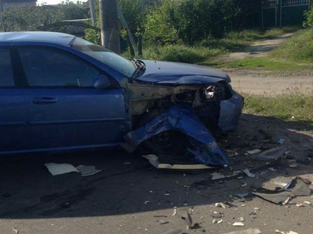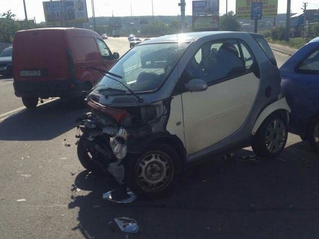 На развилке поворотов на Ирпень и Бучу, напротив АЗС, таксист на "Шевроле" подрезал "Смарт".