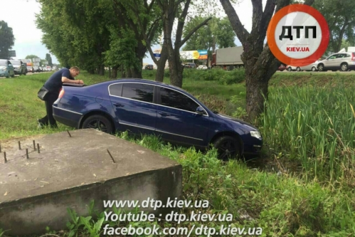 ДТП в Киеве: на Окружной ВАЗ отправил Volkswagen в кювет