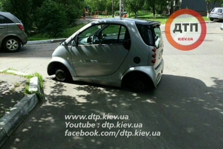 На парковке, у нескольких автомобилей "Смарт", автоворы сняли колёса.