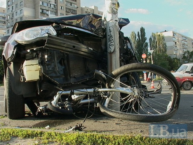 В воскресенье в Киеве на перекрестке улиц Митрополита Шептицкого и Никольско-Слободской в результате столкновения двух автомобилей пострадал случайный велосипедист, стоявший на светофоре, сообщает корреспондент LB.ua.