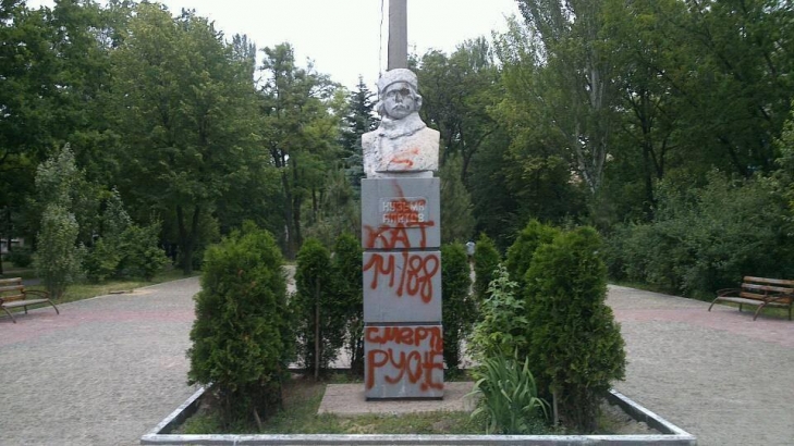 В Мариуполе неизвестные изрисовали памятник "махновцу" Кузьме Апатову