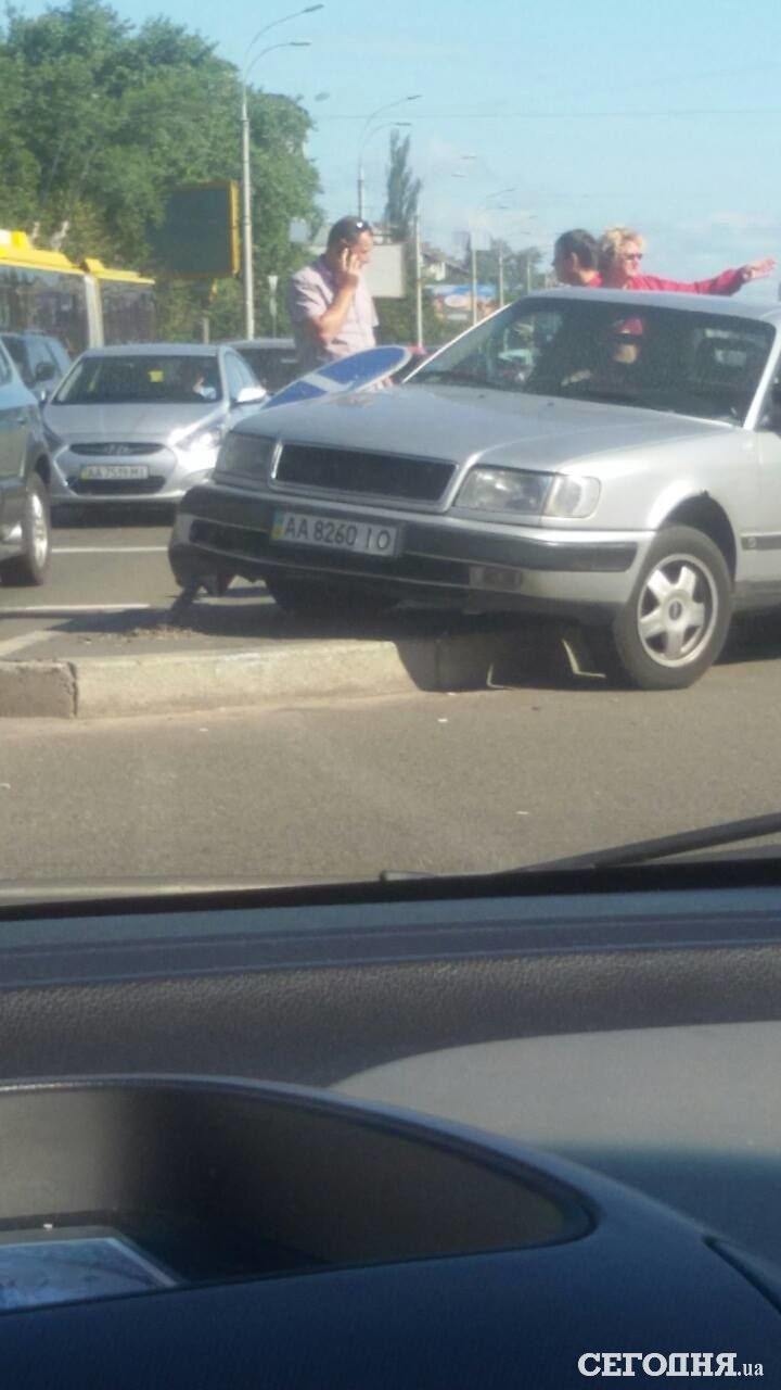 В Киеве на бульваре Перова водитель автомобиля "Ауди" не справился с управлением и сбил дорожный знак.