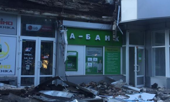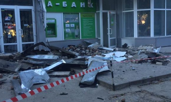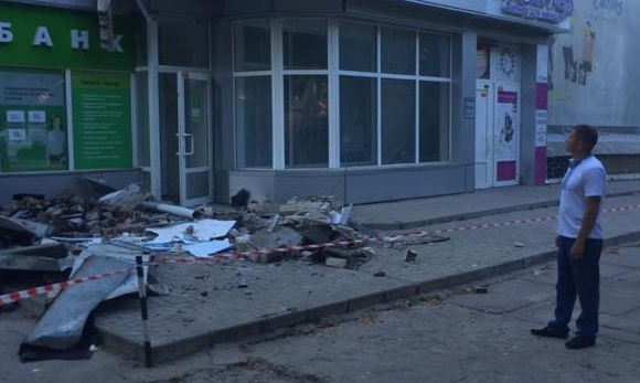 В Херсоне на проспекта Текстильщиков, 10 на женщину, которая снимала деньги в банкомате, обвалилась значительная часть карниза. Об этом сообщил в Facebook депутат Херсонского облсовета Николай Ставицкий, опубликовав соответствующие фотографии.