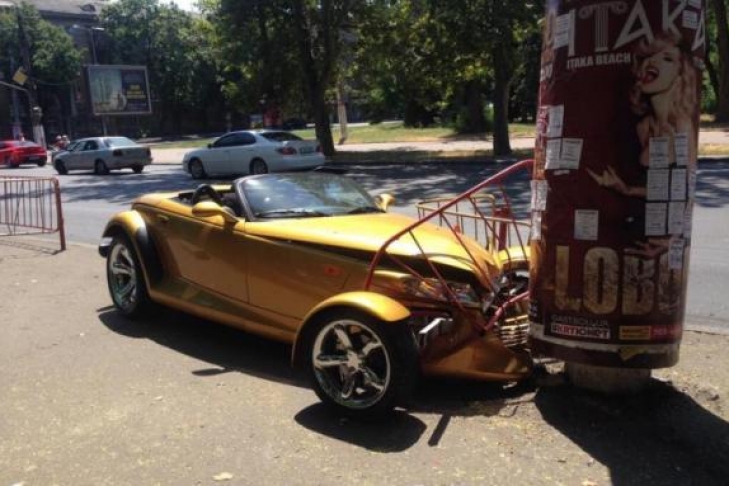 В Одессе на проспекте Шевченко кабриолет Chrysler Prowler золотого цвета снес ограждение и врезался в столб. Об этом сообщает "Думская".