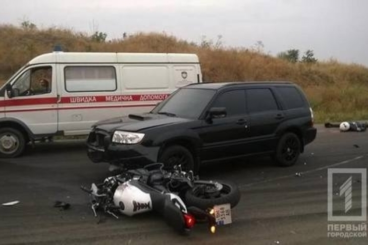 Столкнулись автомобиль и мотоцикл. От сильнейшего удара байкер отлетел на несколько метров от места происшествия.