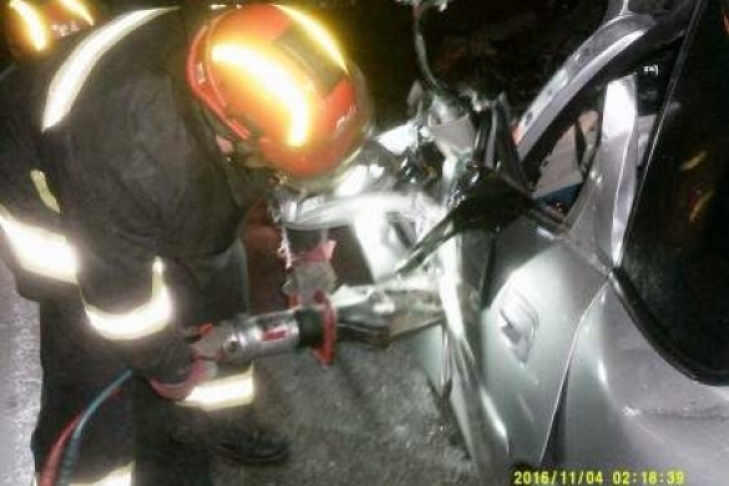 На место прибыли спасатели ГСЧС и освобождали тело мужчины из автомобиля с помощью спецсредств.