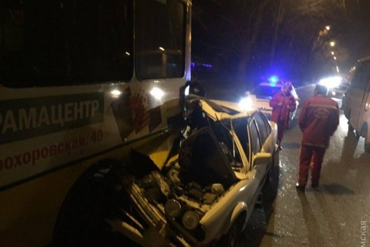 ВМW на скорости влетел под маршрутку в Одессе: есть пострадавшие