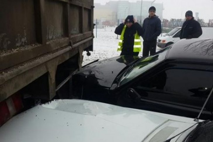 Согласно информации, на улице Мурманской стояли крупногабаритные транспортные средства. Последней в колонне стоял грузовик МАЗ. Водитель Opel Kadett, не справившись с управлением на скользкой дороге столкнулся с авто МАЗ, за ним в авто МАЗ врезался Chevrolet. Машины едва задели бензобак грузовика, но не существенно.